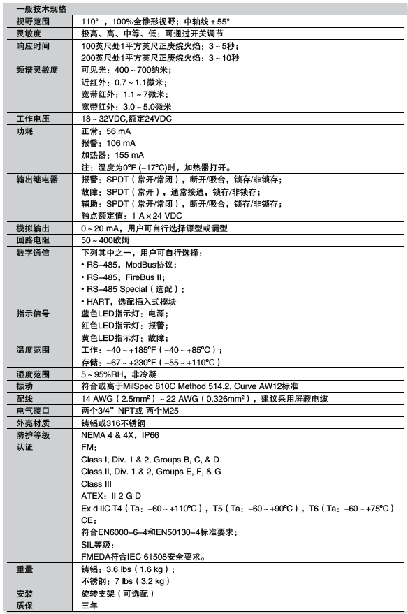 ? 可在各種環(huán)境條件下檢測碳氫化合物和非碳氫化合物燃料火焰;