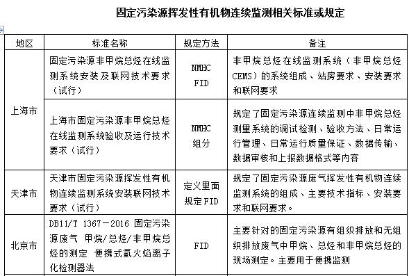 我國在揮發性有機物監測方面也出臺了一系列監測標準。各地針對固定污染源揮發行有機物連續監測相繼出臺了技術規范。