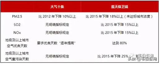 圖表 5:“藍天保衛戰”與“大氣十條”主要指標對比